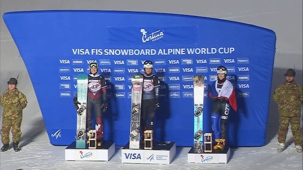 Kaylie Buck of Oakville, Ont., captured World Cup snowboard silver Saturday in the women’s PGS race at Cortina d’Ampezzo, Italy.