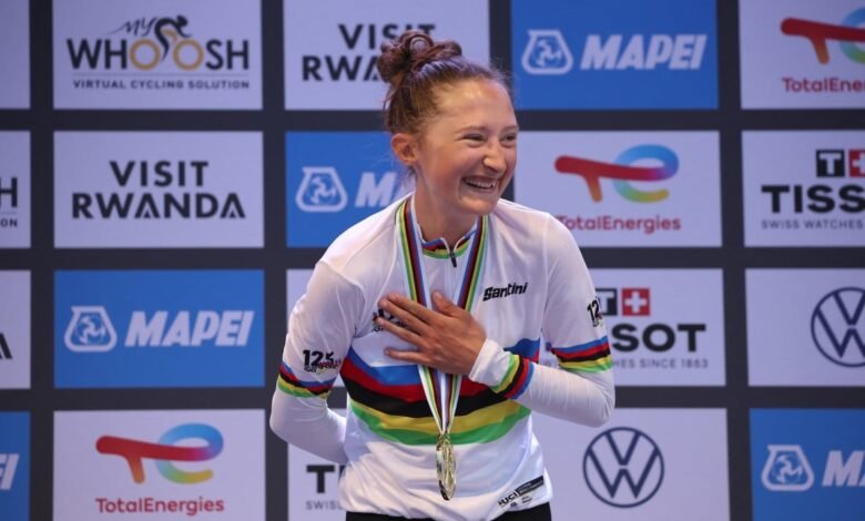 Canadian Magdeleine Vallieres won the women’s elite road race at the 2025 UCI Road World Championships on Saturday in Kigali, Rwanda.