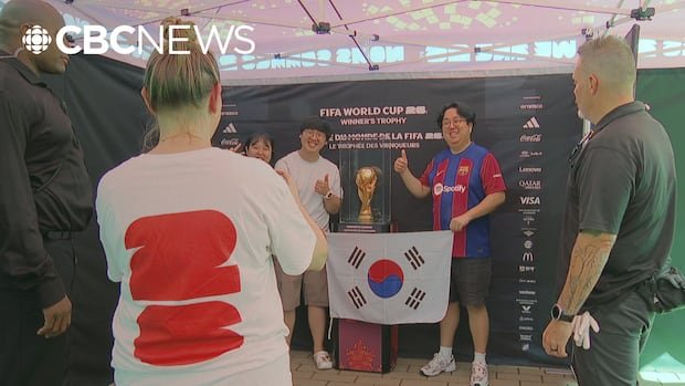 The excitement for the 2026 FIFA World Cup is ramping up with just 10 months to go until the big soccer event. Earlier today fans got a chance to see the FIFA World Cup trophy in person in Vancouver, while it was on display at Jack Poole Plaza. CBC News stopped to chat with fans who had lined-up to see the trophy.