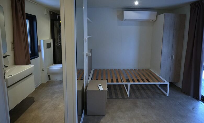 A view of the interior of one of the trailer homes at the Athletes Village for the Milan-Cortina Olympics in February 2026.