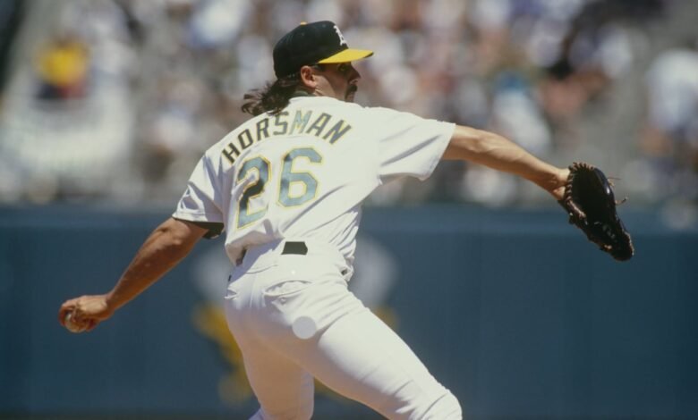 Horsman spent three seasons pitching with the Oakland A’s. (Ken Levine/Getty Images)
