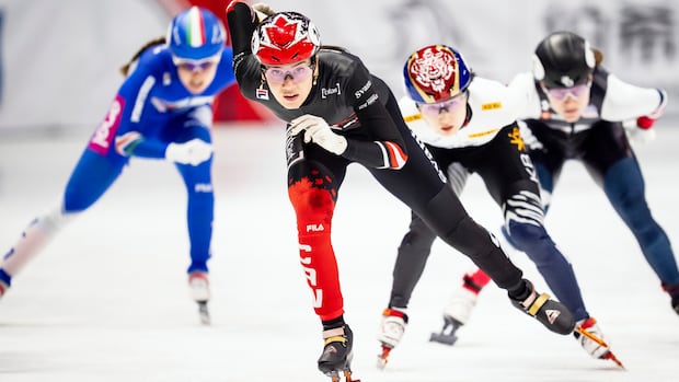 Courtney Sarault of Moncton, N.B., finishes second in the women’s 5000-metre final at the ISU Short Track World Tour stop in Montreal.