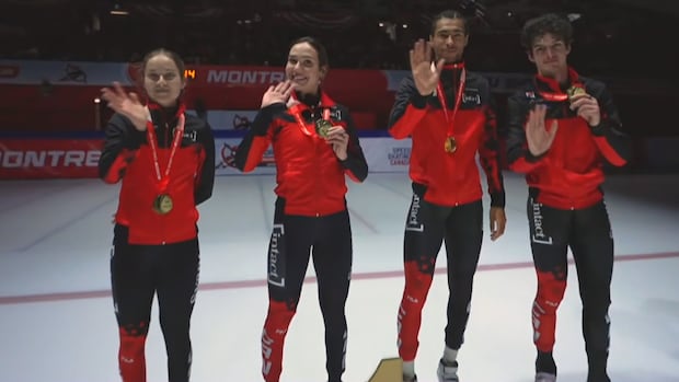 The Canadian Ice Maples finish first in the mixed team relay final at the ISU Short Track World Tour stop in Montreal.
